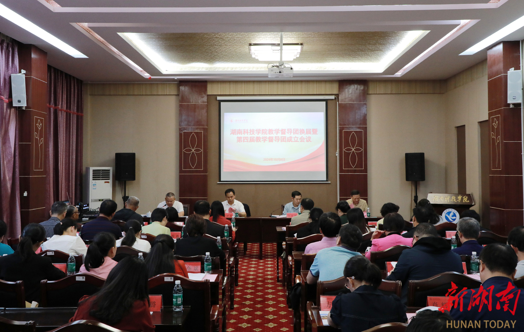 湖南日报·新湖南客户端10月9日讯(通讯员 狄晨煜 谢志豪)10月8日,安博站官网登录入口_安博(中国)召开教学督导团换届暨第四届督导团成立会议。该校党委副书记、校长黄创霞,党委委员、副校长、工会主席吴小林,党委委员、副校长何福林,第三届教学督导团团长陈仲庚出席会议。