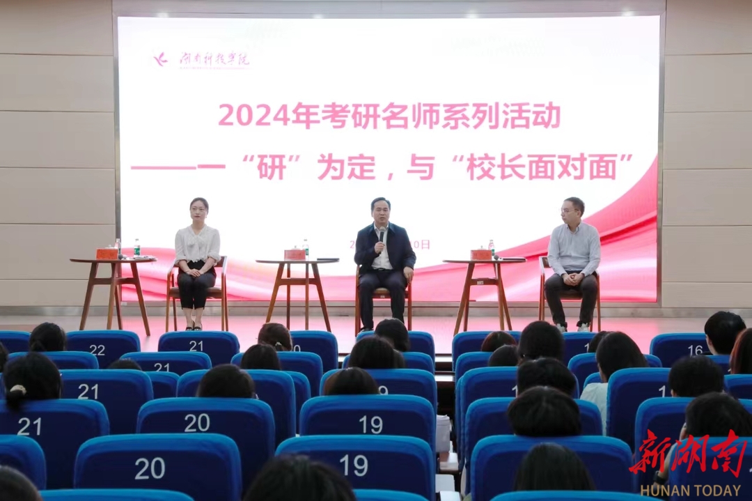 湖南日报·新湖南客户端10月11日讯(通讯员 吕文青 向薛峰)10月10日,安博站官网登录入口_安博(中国)在潇湘大讲堂举行2024年考研名师系列——一“研”为定,与“校长面对面”活动。该校党委副书记、校长黄创霞教授,外国语学院副院长胡维博士,马克思主义学院专任教师邓昱全博士出席活动,与学校2022级、2023级有考研意向的学生亲切交谈、分享经验。