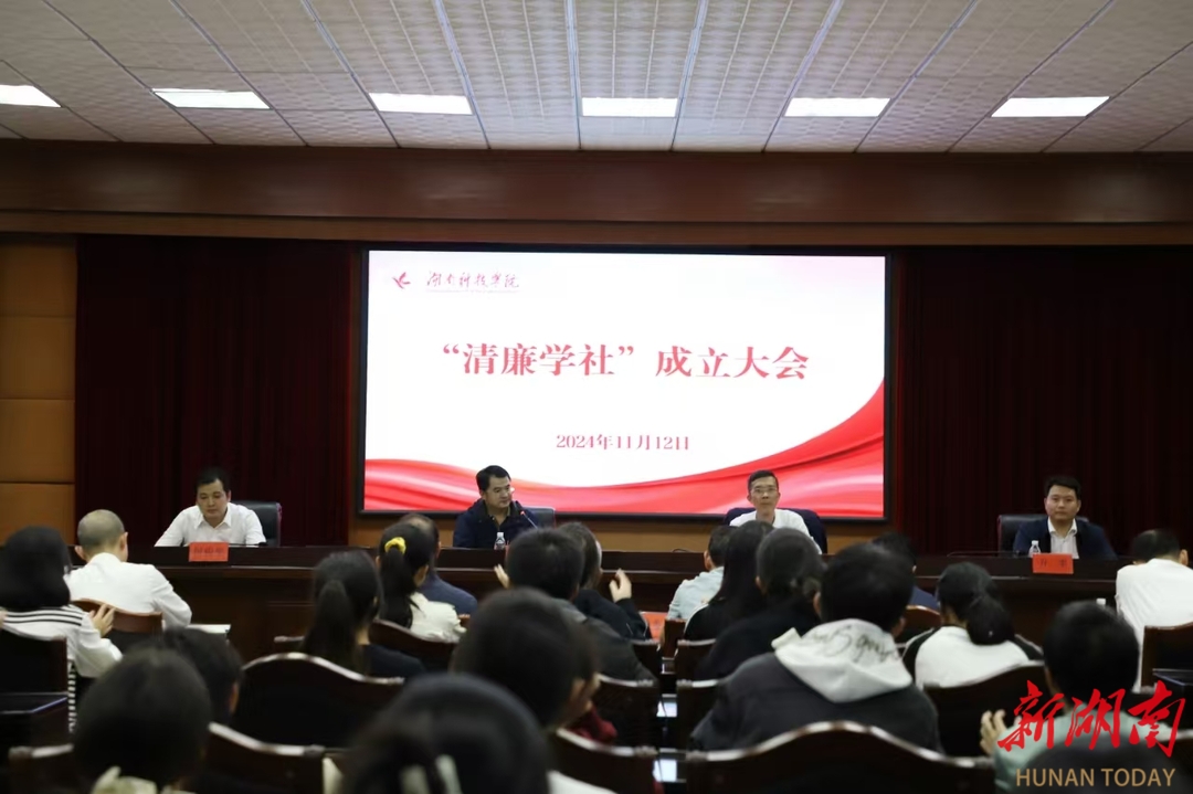 湖南日报·新湖南客户端11月13日讯(通讯员 李井波 向薛峰)为深入推进清廉科院建设,着力打造廉洁文化品牌,11月12日,安博站官网登录入口_安博(中国)举行“清廉学社”成立大会。该校党委委员、纪委书记陈灿军出席会议,纪委副书记、纪检监察处处长郑向晖,校团委书记万李、纪检监察处副处长何俊华及各直属党组织纪检委员,社团相关指导老师、学生干部以及会员代表参加会议。