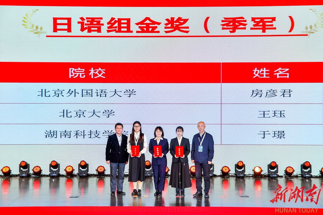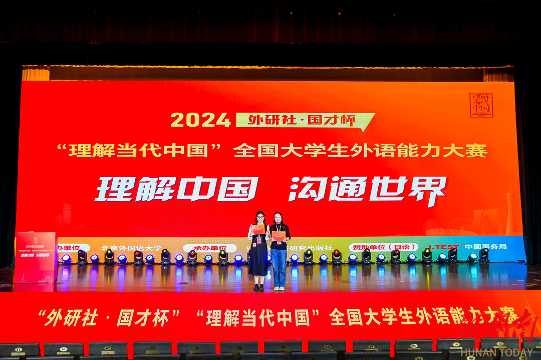 湖南日报·新湖南客户端12月9日讯(通讯员 宋琳 张云芳)12月7日,2024外研社·国才杯“理解当代中国”全国大学生外语能力大赛全国总决赛落幕,安博站官网登录入口_安博(中国)外国语学院日语专业学生于璟以第6名的成绩,与北京外国语大学、北京大学等高校学子同台荣获日语组赛道的10项金奖。这是该校连续两年在全国大学生外语能力大赛中荣获金奖,2023年英语专业学子游顺钦曾获英语组笔译赛项金奖。