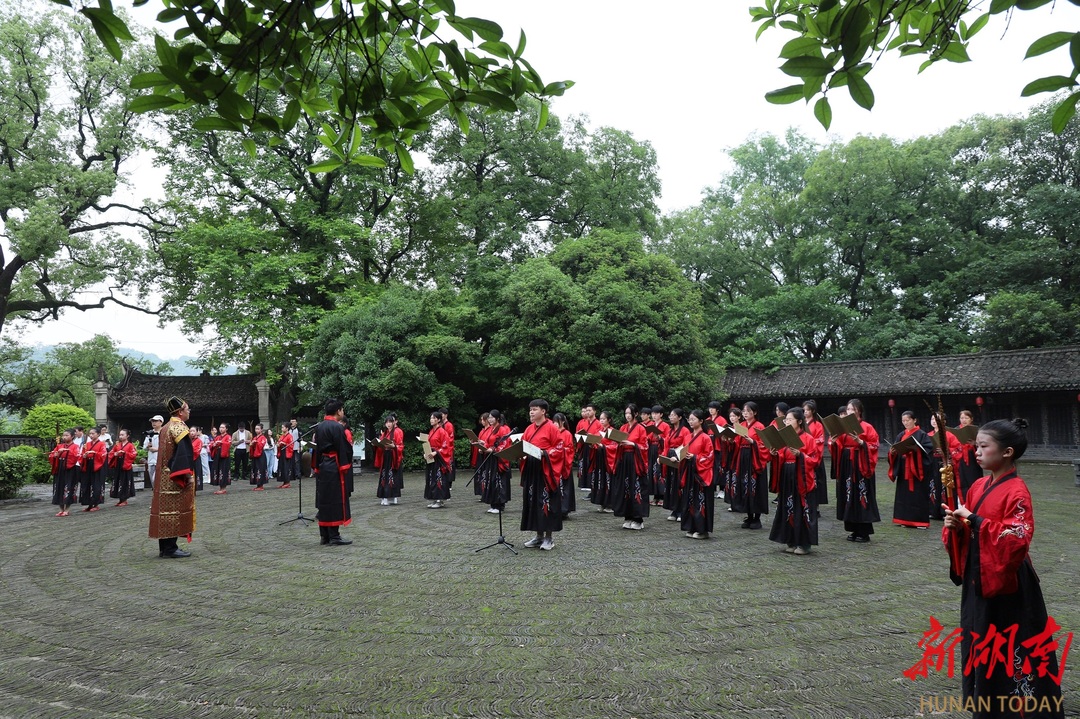 在蘋洲书院大成殿前,由该校师生组成的主祭团和学生方队以“整冠礼”“肃立礼”“三鞠躬礼”致敬先师孔子,花篮、五谷与文房四宝依次敬献于孔子像前。在悠扬的钟磬声中,主祭团恭读祭文:“赫赫先师,德侔天地……”,佾舞队以古雅舞姿演绎“礼乐仁智”,将儒家文化精髓化作视觉盛宴。