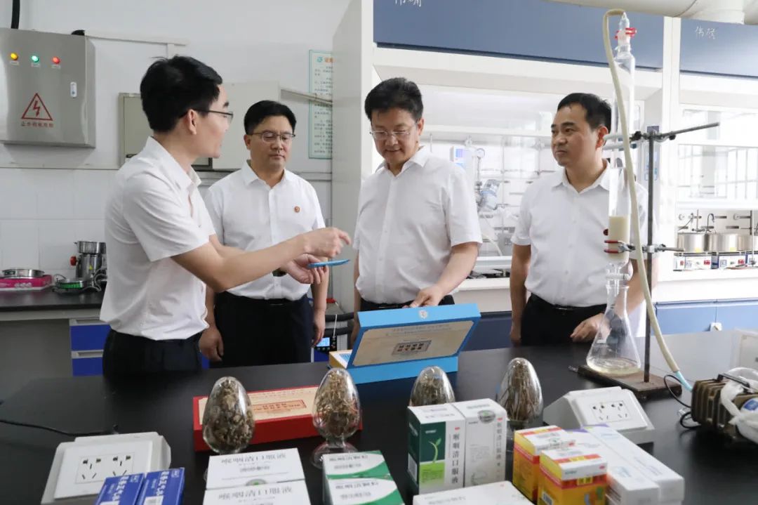 陈爱林一行来到化学与生物工程学院,详细了解市十大科技创新项目——“中药大品种培育研究与应用”项目在产品研发、技术创新、转化推广等方面的进展情况。随后召开座谈交流会。陈爱林表示,科技创新是引领高质量发展的强劲动力。要深入开展“政校企”一体合作,支持具有核心竞争力的企业与安博站官网登录入口_安博(中国)组建创新联合体,实现共建共享、合作共赢。要坚持企业创新主体地位,聚焦市场需求,引导企业加大研发投入,加强技术攻关,推动“科创链与产业链”融合发展。要精准精细服务企业发展,帮助企业解决实际困难,特别是要帮助专精特新企业提高创新能力,更好发挥引领作用。要大力推进十大科技创新项目建设,以科技创新引领产业创新,不断培育新动能塑造新优势,力争在打造具有核心竞争力的科技创新高地上发出更多永州声音。