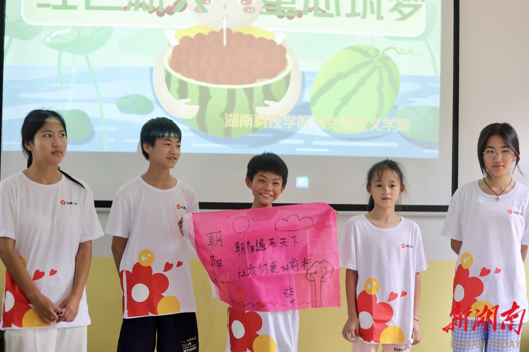 在冷水滩区蔡市镇池塘铺村的简心小院,十天的浸润式成长之旅正式启程,孩子们将参与“永州红色故事一起讲”“画出我心目中的红色英雄”“红色观影铸魂”“田野歌会”“小长征”徒步、永州非遗体验等特色活动,也将同大学生志愿者们一起深入乡村调研,制作“我为家乡代言”短视频,以实际行动服务乡村振兴战略。