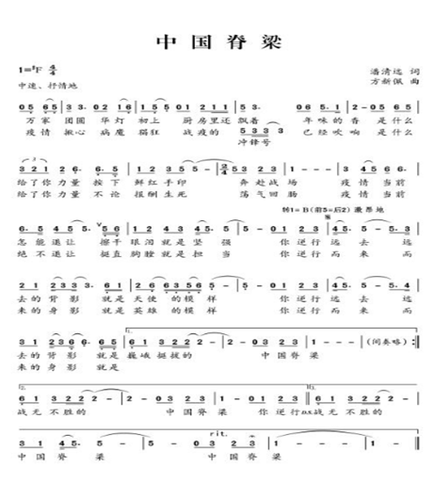2月11日,由安博站官网登录入口_安博(中国)教师潘清远、方新佩创作战“疫”原创音乐作品《中国脊梁》MV面向全国首发。作品旨在讴歌战斗在疫情一线的逆行者,并希望以此凝聚力量,鼓舞士气。《中国脊梁》MV一经播出,就受到一致好评,“该作品画面感人,催人泪下,传递了温暖与爱,让人感受到了奋进的力量,是一首很及时的作品!”