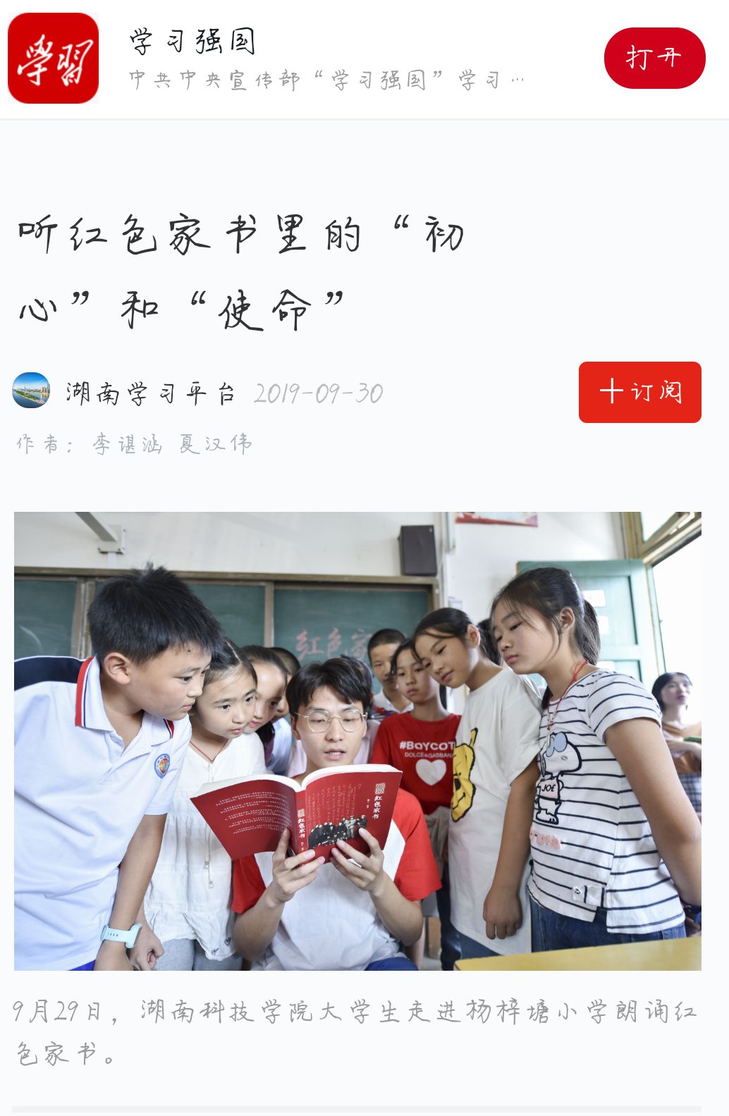 9月29日,安博站官网登录入口_安博(中国)大学生走进杨梓塘小学朗诵红色家书。