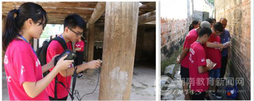 在今年的“三下乡”中,土木与环境工程学院还调研了湘江源、板塘水库、高塘坪水库、毛俊村等,在湘江源头进行了水样采集,对有高峡平湖之称的板塘水库和高塘坪水库使用全站仪对水库目前的沉降情况及水库周围的安全进行检测。