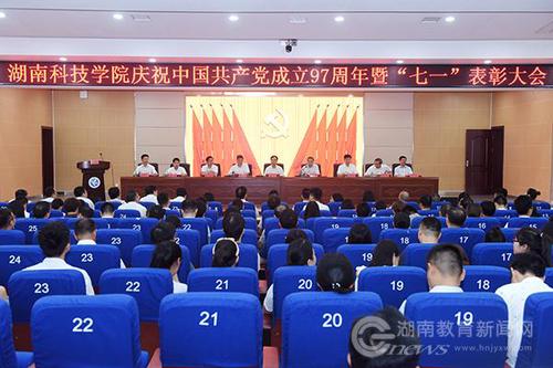 大会在庄严的国歌声中开幕。校党委副书记唐艳明宣读表彰决定。大会宣读了《关于表彰湖南省普通高校百佳大学生党员的通报(湘教工委通[2018]22号)》,王占康同学获此殊荣;大会还对邓凌峰等82名优秀共产党员,卢桂珍等9名优秀党务工作者,电子与信息工程党总支等3个先进直属党组织,化学与生物工程学院党总支化材、食品、制药党支部等7个先进党支部以及胡清华等“微党课”比赛获奖人员及优秀组织单位予以表彰。