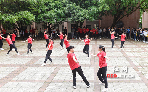 快闪活动结合《龙的传人》《红日》《追光者》《我多喜欢你,你会知道》《带你去旅行》等青年学子熟知喜爱的歌曲,将习近平新时代中国特色社会主义思想、党的十九大精神内涵融入曲目中,进行填词和编舞,以大家喜闻乐见的歌舞快闪形式在学校美术楼、尚美楼、桃园学生食堂、行政办公楼以及东门等地进行演绎,节奏明快的音乐旋律和充满活力的舞姿吸引了众多师生驻足观看。活动最后,全体师生高声合唱《我爱你,中国》,令全场热血沸腾,心潮澎湃,爱国情愫油然而生。