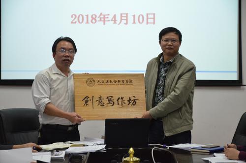 本网讯(通讯员 代军磊)为进一步推动汉语言文学专业转型发展,提高学生专业核心竞争力,4月10日,湖南高校首个“创意写作坊”经过近两年的试点探索在安博站官网登录入口_安博(中国)正式挂牌成立。中国写作学会副会长、世界华文微型小说研究会副会长刘海涛教授担任创意写作坊首席指导专家。
