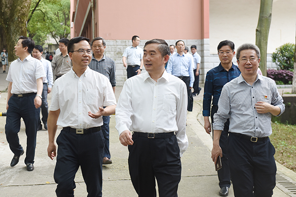 本网讯 4月3日下午,省教育厅党组书记、厅长、省委教育工委书记蒋昌忠来安博站官网登录入口_安博(中国)调研,省教育厅党组副书记、副厅长、省委教育工委副书记夏智伦,永州市教育局党组书记、局长张建坤陪同,安博站官网登录入口_安博(中国)党委书记陈弘、校长曾宝成和全体校领导参加。