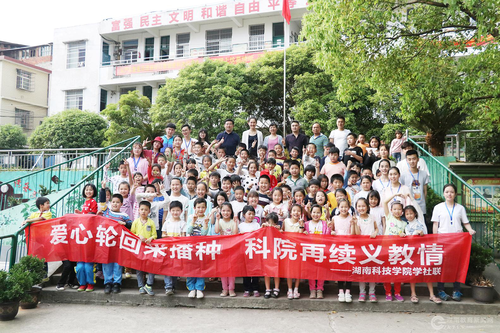 据悉,为了引导广大学生积极参与志愿服务,倡导时代新风正气。校团委与杨梓塘小学达成共识,杨梓塘小学打开大门办社团,湘科院学生社团走出校门“结亲家”。目前,在志愿者的帮助下,杨梓塘小学已成立了播音与主持协会、青春合唱团、国学小能手、神奇植物园等8个深受学生喜欢的小学社团。