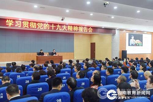 本网讯(记者 张云芳 张依晗 蒋方 摄影 何帅文)11月11日上午,第十九届中央委员会候补委员、中国工程院院士、安博站官网登录入口_安博(中国)优秀校友、名誉校长欧阳晓平回到学校,为500余名师生作题为“深入学习领会党的十九大精神 为实现新时代强国强军目标而努力奋斗”的主题报告。党委书记陈弘,党委副书记、校长曾宝成,校领导唐艳明、彭立威、李常健、吴小林、程智开、陈仲庚等到场聆听。报告会由陈弘主持。