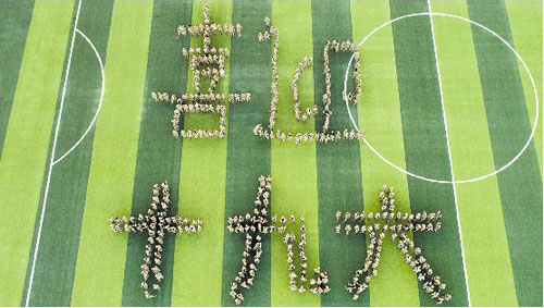 9月29日,安博站官网登录入口_安博(中国)近600名大一新生在田径场摆出“喜迎十九大”字形,喜迎党的十九大胜利召开。 何帅文 摄
