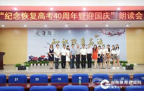 校党委书记陈弘饱含深情,他说,在恢复高考四十年之际,在我们伟大的祖国将要迎来68岁生日的时候,学院几代老师和同学汇聚一堂,用这种特殊的方式纪念恢复高考40周年,迎接伟大祖国的生日,通过朗读分享交流,传递给大家一个共同的信念:读书获取知识,知识改变命运,知识就是力量,拥有知识的个人充满希望,拥有知识的民族不可战胜。让我们一起为中华崛起而读书,为治国安邦再读书。