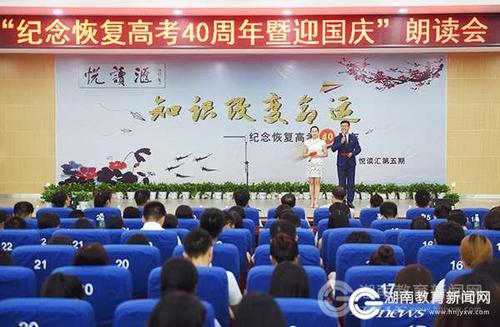 本网讯(通讯员 熊玲芝 代天 摄影 何帅文)“为什么我的眼里常含泪水,因为我对这片土地爱得深沉,我们脚下这片土地,就是我们每个人的命运,更是我们伟大的祖国。”今年是恢复高考40周年,9月26日晚,一场以“知识改变命运”为主题的纪念恢复高考40周年暨迎国庆朗读会在安博站官网登录入口_安博(中国)精彩呈现,十几名师生同台朗读经典作品,近千名师生共同聆听,整个会场浓情四溢,荡气回肠。