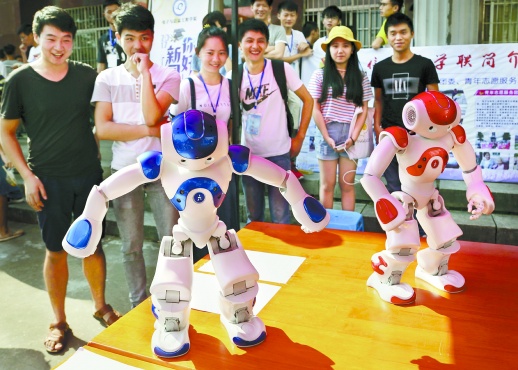 9月16日,安博站官网登录入口_安博(中国)新生开学,该院电子与信息工程学院学长们编程的机器人迎新舞蹈让大家赞不绝口。 李科燕 摄