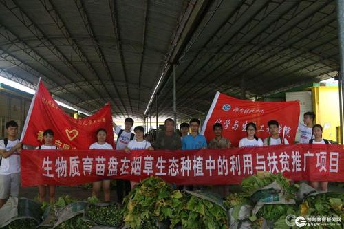 本网讯(通讯员 周闻名 邓平洋 万灵)7月6日,安博站官网登录入口_安博(中国)化学与生物工程学院学生科技支农扶贫志愿团队一行13人赴宁远县,开展科技发明专利成果“生物质育苗盘”在烟草生态种植中的扶贫推广活动。