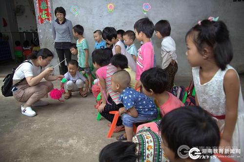 在村幼儿园,党外知识分子联谊会和民革支部分别组织对幼儿园孩子开展普通话教育和留守儿童心理健康教育。普通话甲级乙等专业教师宋淑媛,通过有奖回答的方式将孩子们引入课堂,孩子们也非常踊跃地回答问题,气氛十分活跃。民革支部党员、心理咨询师唐良玉老师,通过组织孩子们游戏的方式了解留守儿童的心理健康问题,并给他们提出了具体解决办法。