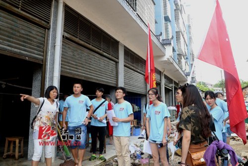他们是那样认真、那样积极、那样卖力。汗水浸湿了衣衫,泥巴裹满裤脚、手掌磨出血泡,但他们毫不在乎,脸上始终洋溢着笑容。在古稀老人邓奶奶的家里,志愿者们组成积水搬运队伍,将老奶奶房间里一尺深的积水一勺一勺,用桶接力清理干净。邓奶奶对志愿者们的付出表示感动,他举起大拇指说,这些孩子真好。在留守老人王奶奶的家里,志愿者们为她家清洗地板、桌椅、被单,了解老人生活现状,告诉老人洪灾过后疾病预防知识。
