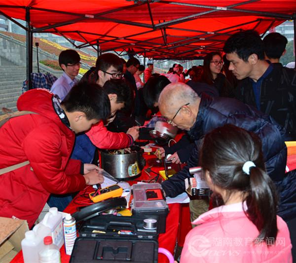 3月5日上午,零陵区东山广场大学生家电义务维修点吸引了众多居民。“这些学生娃娃帮助居民免费修家电,真是好样的!”拿着修好的风扇,今年78岁的刘婆婆笑呵呵地告诉记者