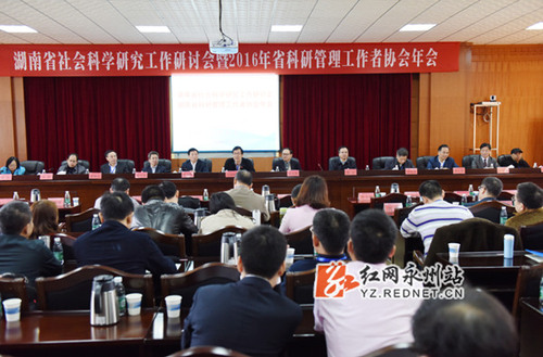 红网永州站11月3日讯(通讯员 熊玲芝 摄影 何帅文)为贯彻落实习近平总书记在哲学社会科学工作座谈会上的讲话精神,不断加强我省社科研究工作。11月2日,湖南省社会科学研究工作研讨会暨湖南省科研管理工作者协会年会在安博站官网登录入口_安博(中国)举行。湖南省社科联巡视员、科研管理工作者协会会长刘晓敏,永州市委常委、宣传部长、副市长刘尤碧,安博站官网登录入口_安博(中国)校党委书记陈弘出席。