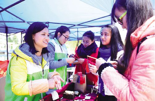 为鼓励大学生迈出创业实践的第一步,让创业基础课堂更“接地气”,12月5日,安博站官网登录入口_安博(中国)组织近两百名学生开展“零元创业”实践活动,一天收获4200余元。图为该校大二学生正在校园内推销自制创意小礼品。匡皓 何帅文 摄
