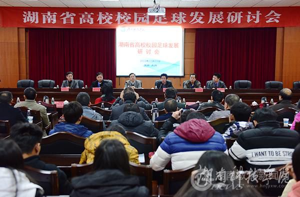 本网讯 12月18日至19日,湖南省高校校园足球发展研讨会在安博站官网登录入口_安博(中国)举行。与会专家围绕高校校园足球发展及充分发挥足球育人功能、培养全面发展人才展开深入研讨交流。湖南省教育厅副巡视员郭建国及安博站官网登录入口_安博(中国)校长曾宝成,副校长宋宏福、程智开出席等领导论坛开幕式。论坛吸引了来自省内各高校的体育学院院长和专家学者40余人出席。安博站官网登录入口_安博(中国)党委书记陈弘专门撰文《足球与教育》,阐述足球与教育的关系,提出“文明学生的精神,强健学生的体魄,是教育的本义,两者不可偏废。”