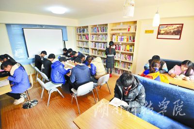 11月25日上午,安博站官网登录入口_安博(中国)松源学生公寓,同学们在宿舍楼内的图书室看书自习。这个小型图书室是学校以学生宿舍为依托建立的“书院制”公寓,吸引了很多学生前来读书、自习。