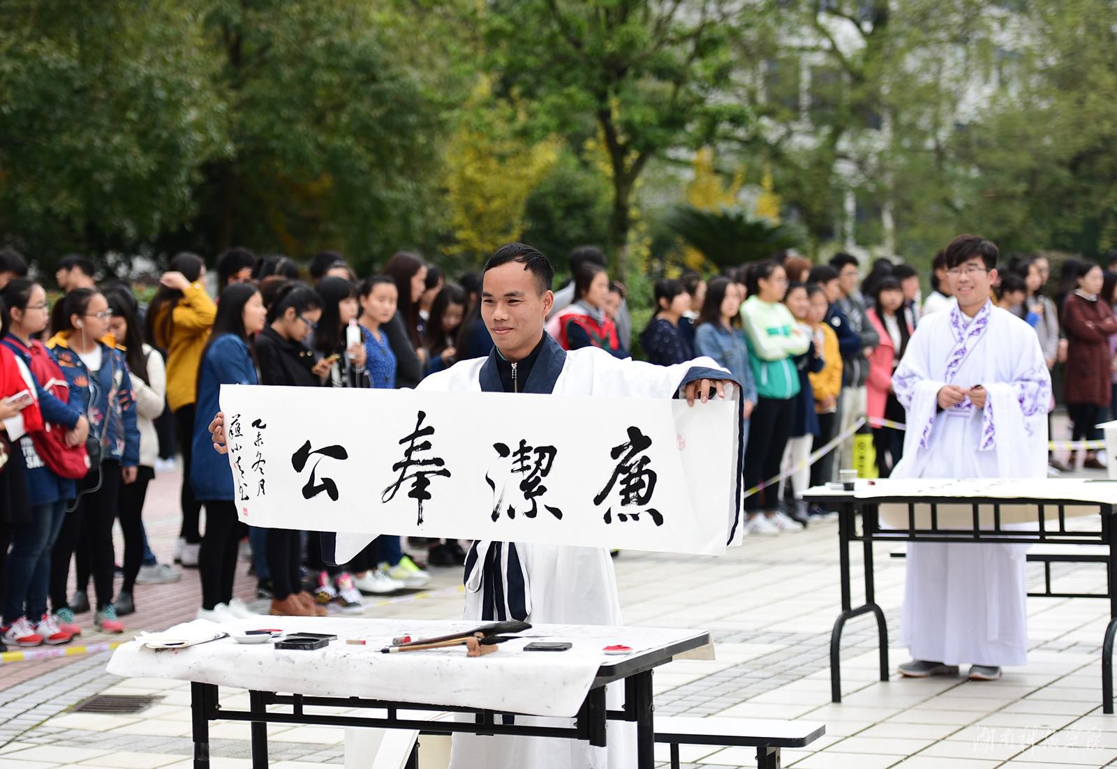 本网讯 挥毫遒劲书正气, 翰墨飘香展清廉。11月22日,安博站官网登录入口_安博(中国)近千名师生陶醉在悠扬婉转的古筝声中,欣赏了一场学子着汉服、民国服装现场挥毫泼墨的弘扬传统文化的视觉盛宴。