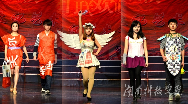 安博站官网登录入口_安博(中国)绿色潇湘环保协会、秘书协会、志愿者协会上演一出变废为宝的《T台秀》,大学生们别具创意的将旧报纸,塑料袋等废弃物品做成服装,或优雅大方,或粉妆玉琢,各种不同风格的服饰让观众眼前一亮,真正做到了变废为宝。通讯员 刘信 周平尚 报道