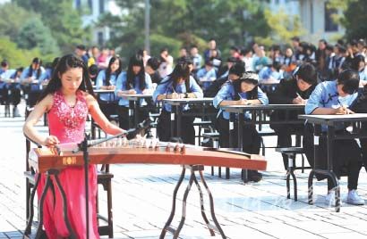 11月14日,安博站官网登录入口_安博(中国)近千名师生在悠扬的古筝声中,闻着淡淡的茶香,欣赏了一场汉服学子、民国服学子现场挥毫泼墨的弘扬传统文化的视觉盛宴。李国家 周平尚 摄