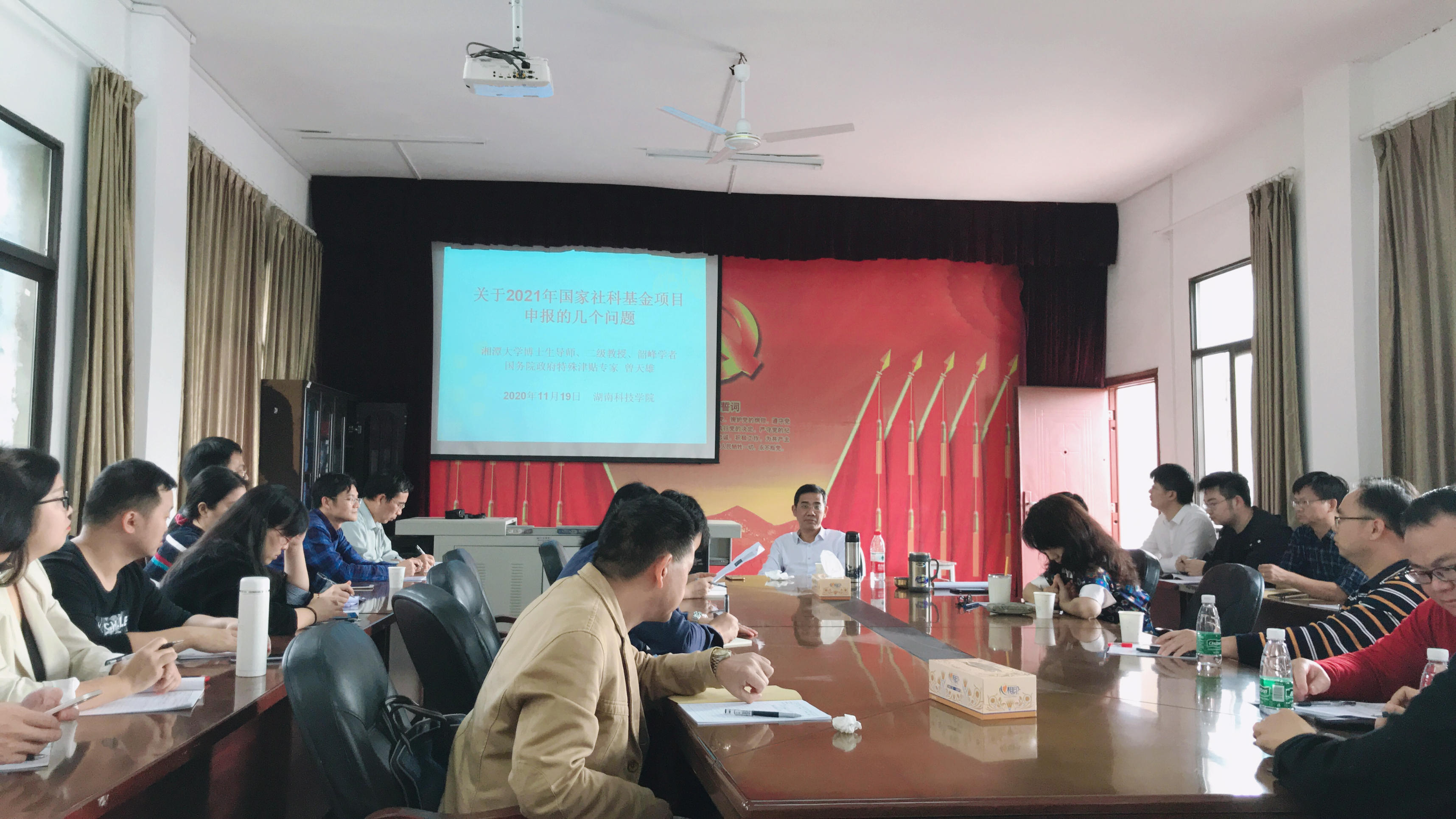 曾天雄作了题为《关于2021年国家社科基金项目申报的几个问题》的报告。他解读了2021年度国家社会科学基金项目申报公告及项目指南,并结合自身申报成功经验介绍了项目申报的方法和技巧。他强调,申报社科基金项目是社科研究人员最基础的基本功,是做科研事业的第一步工作。他表示好的选题是项目申报成功的开始,选题时应突出自己的优势学科特点,注重前期研究成果,立足时代前沿,关注重大战略,强化问题意识,注重理论创新。