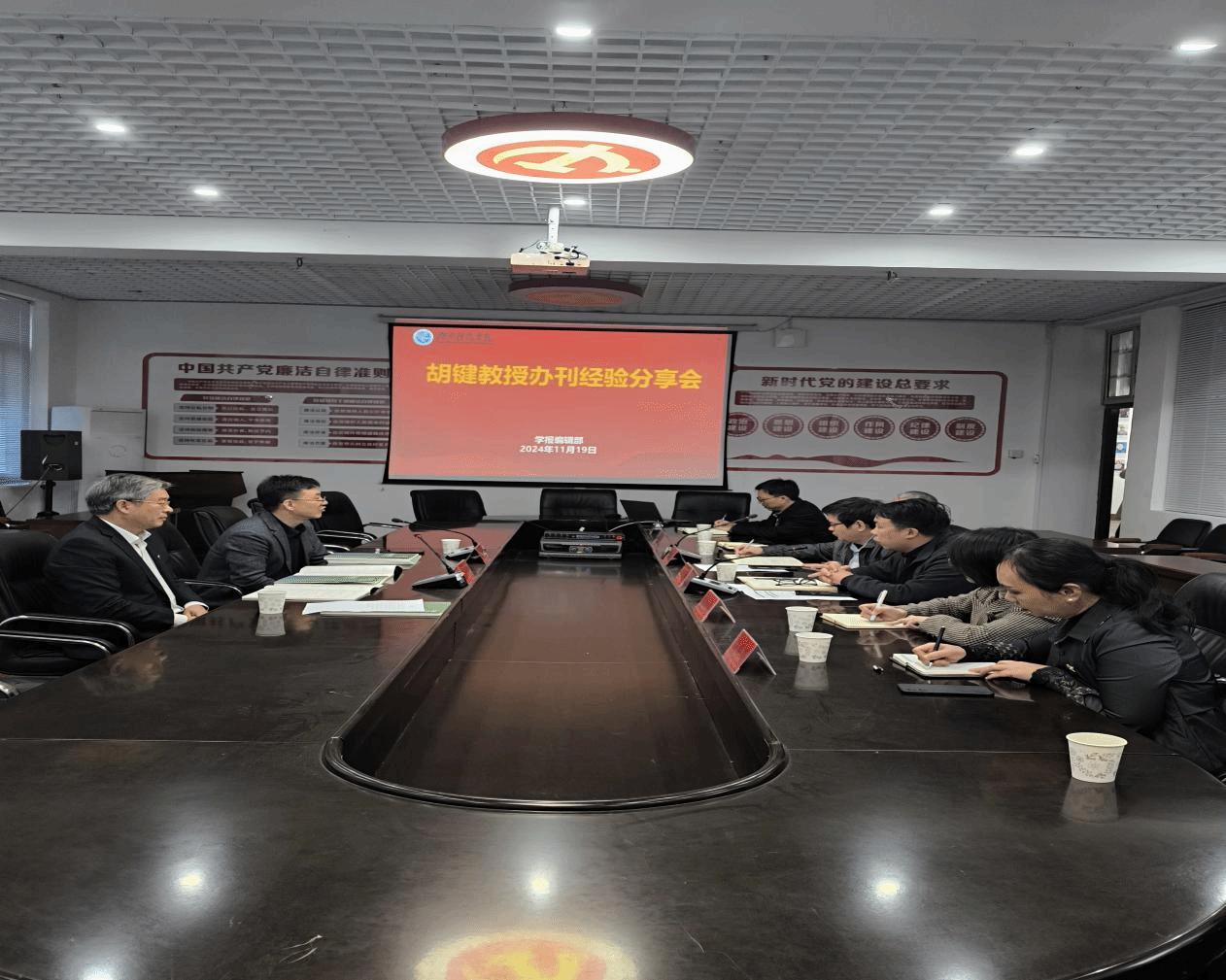 本网讯(通讯员 呙艳妮)11月19日,同济大学博士生导师,原《社会科学》杂志主编胡键教授应邀来我校学报编辑部参加办刊经验分享会,校党委副书记宋宏福出席分享会,文法学院院长谷显明以及我校学报编辑部全体人员参加活动。