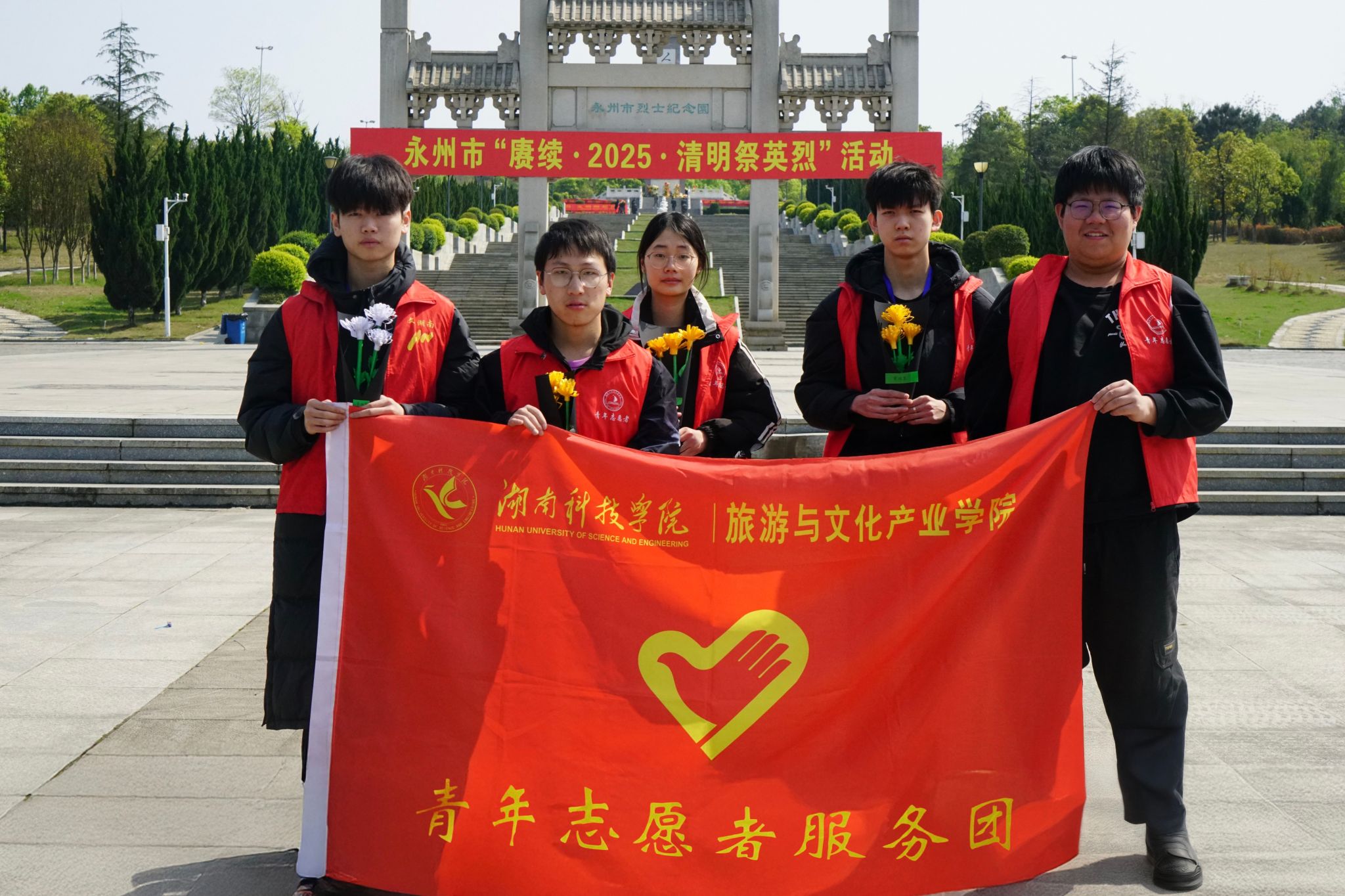 本网讯(通讯员 蒋一睿 李亚萱)4月1日,旅游与文化产业学院青年志愿服务团赴永州市烈士纪念园开展“清明祭英烈•文旅传薪火”活动。