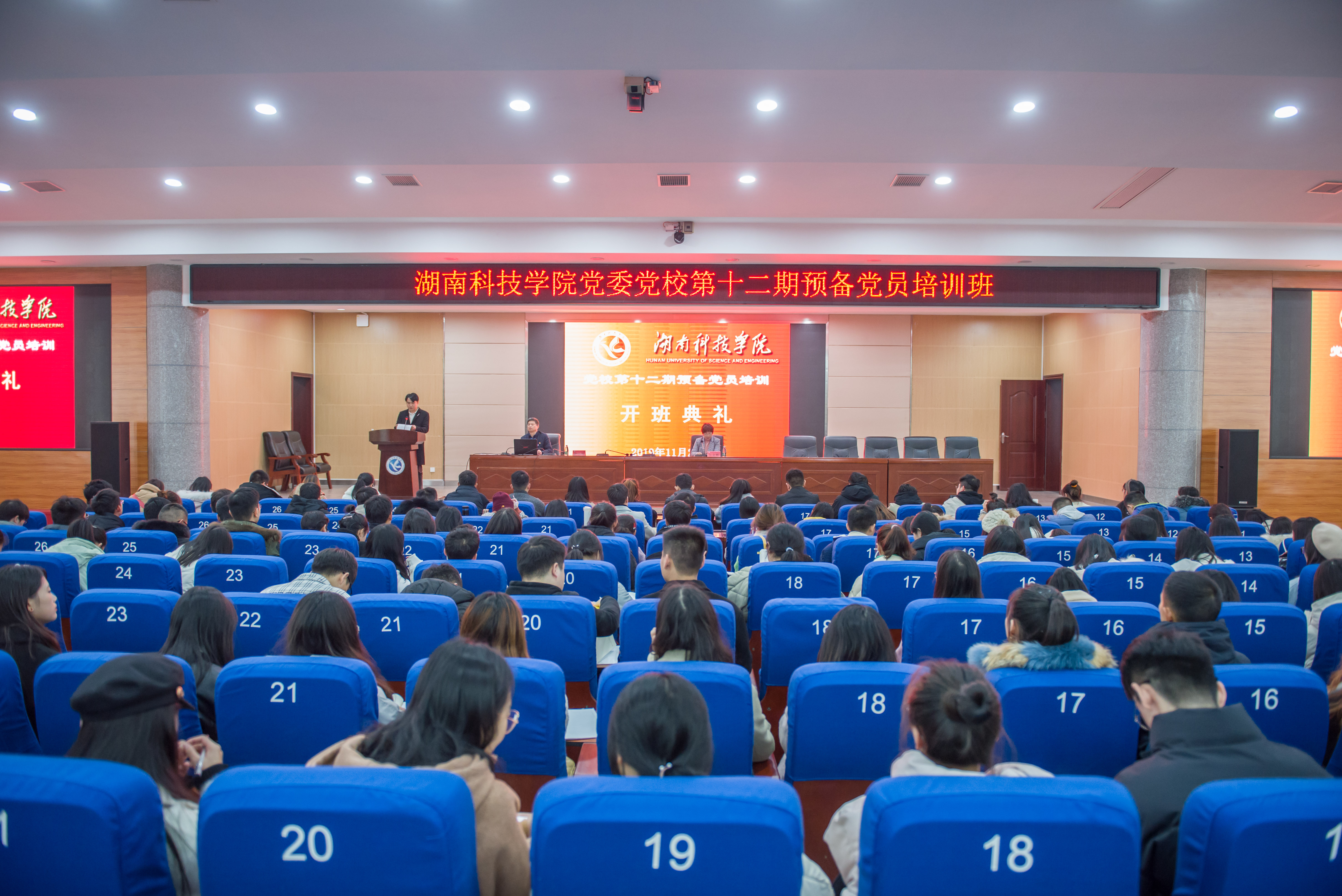 本网讯 11月28日晚,学校举行第十一期预备党员培训班开班仪式。来自全校各直属党组织的245名师生预备党员参加,党委副书记、党校校长唐艳明出席开班仪式并为学员讲授第一课。