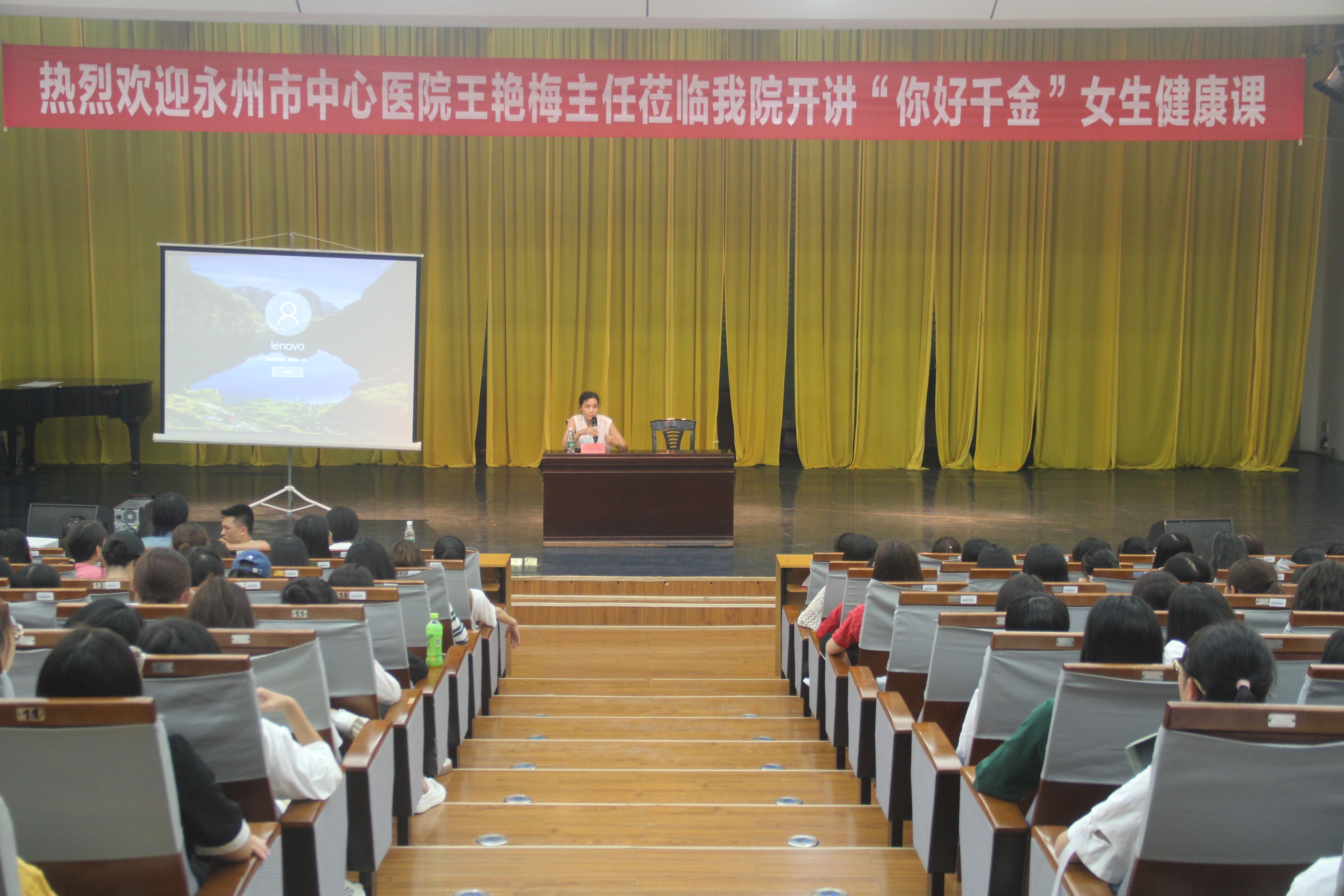 本网讯  9月17日晚,音乐与舞蹈学院举行“你好,千金”女性健康公益讲座。讲座特邀永州市中心医院妇产科主任医师王艳梅作为主讲嘉宾。音乐与舞蹈学2019级全体女生及马克思主义学院2019级女生聆听了本次讲座。