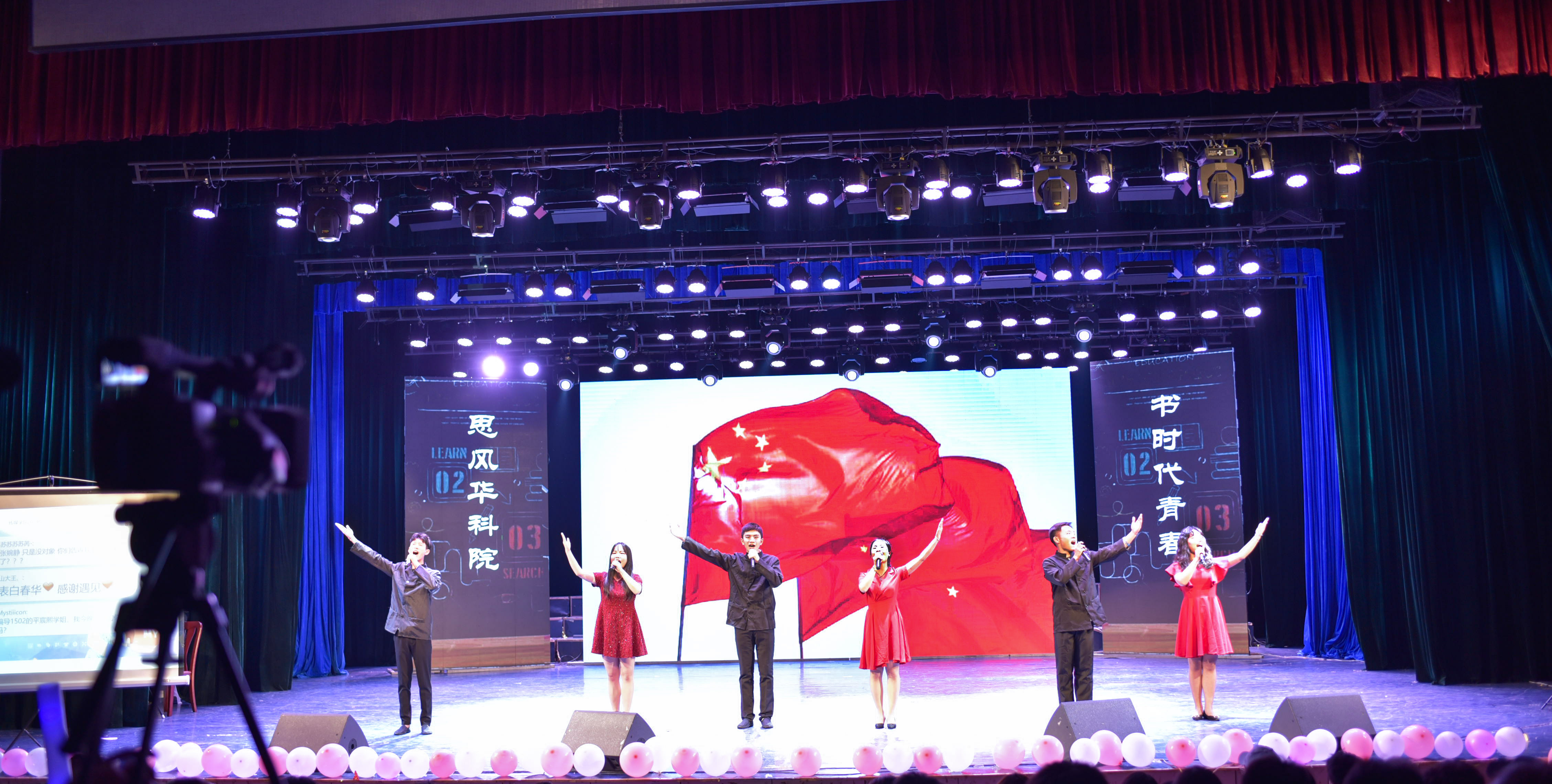 晚会中,歌曲、舞蹈、相声、诗朗诵等精彩节目接连上演。诗朗诵《中国的声音》气势滂沱,饱含激情,表达了对祖国无限的热爱;歌曲《我的未来不是梦》唱出了少年心中的梦想与希望,以及对未来生活的积极态度;节目《时光留影》,用影子的形式演绎了大学四年的趣味生活,追忆了大学美好时光。