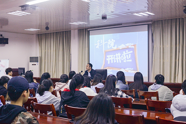 本网讯 3月27日晚,由校团委、科技处主办的第十四期“科院开讲啦”在知行楼107如期开讲。旅游与文化产业学院院长、“湖湘青年英才”黄渊基博士应邀担任讲座嘉宾,与学生畅谈自己对“读书、立志与人生路”的经历与理解。