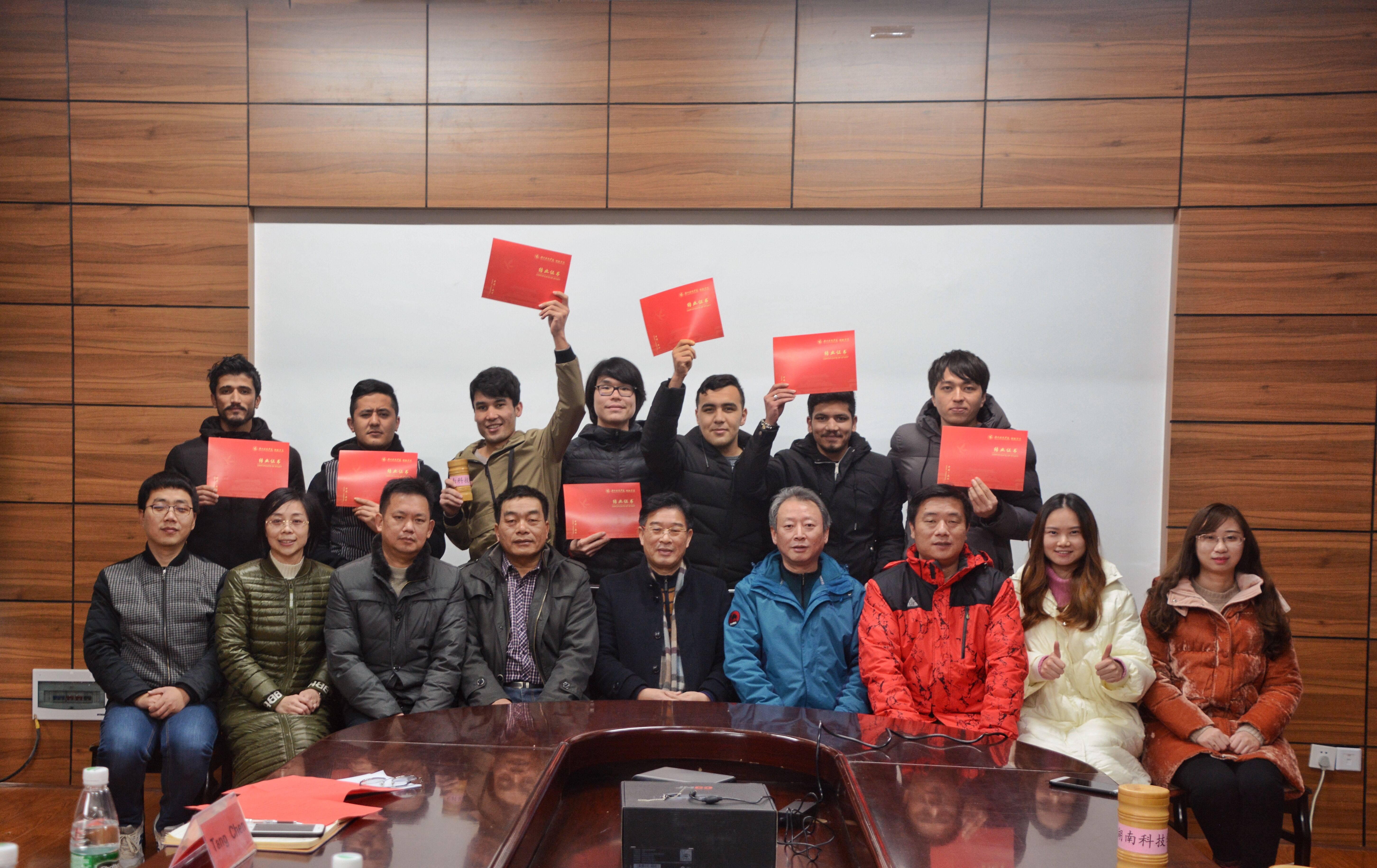 本网讯 1月10日,学校举行首届“一带一路”奖学金国际学生结业典礼。副校长宋宏福出席典礼并为国际生颁发结业证书,国际交流与合作处处长郑际根主持。