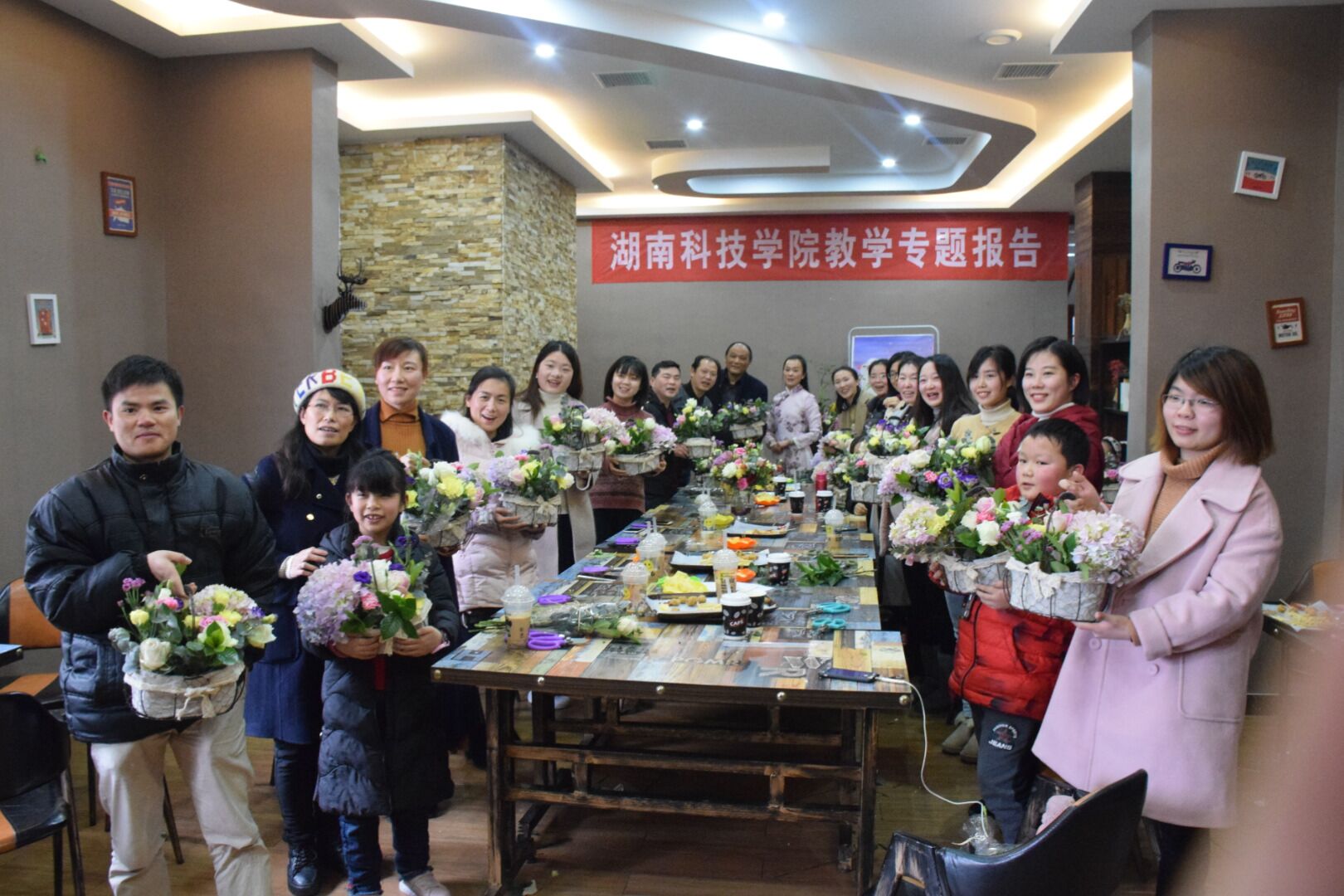 本网讯  为陶冶艺术情操,丰富了老师们的业余生活,3月9日,传媒学院在教师发展中心咖啡厅举办了“花艺与睿智人生”主题花艺沙龙活动。活动邀请了中国传统插花高级讲师、永州椿花湫实花艺工作室创始人韩韩女士为大家讲解插花艺术。该院院长杨增和以及二十多名老师参加了本次活动。