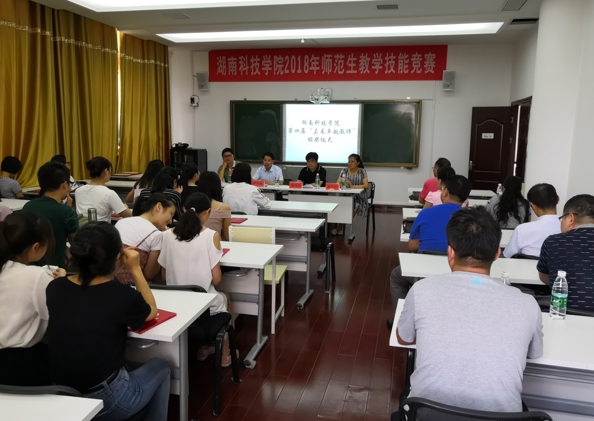 本网讯   7月4日下午,我校第四届“未来卓越教师”教育教学知识与教学技能竞赛颁奖仪式在教师教育学院举行,副校长李常健、教务处副处长包本刚、教师教育学院副院长潘庆红以及获奖学生及其指导老师等30余人参加,教师教育学院院长杨再喜主持颁奖仪式。