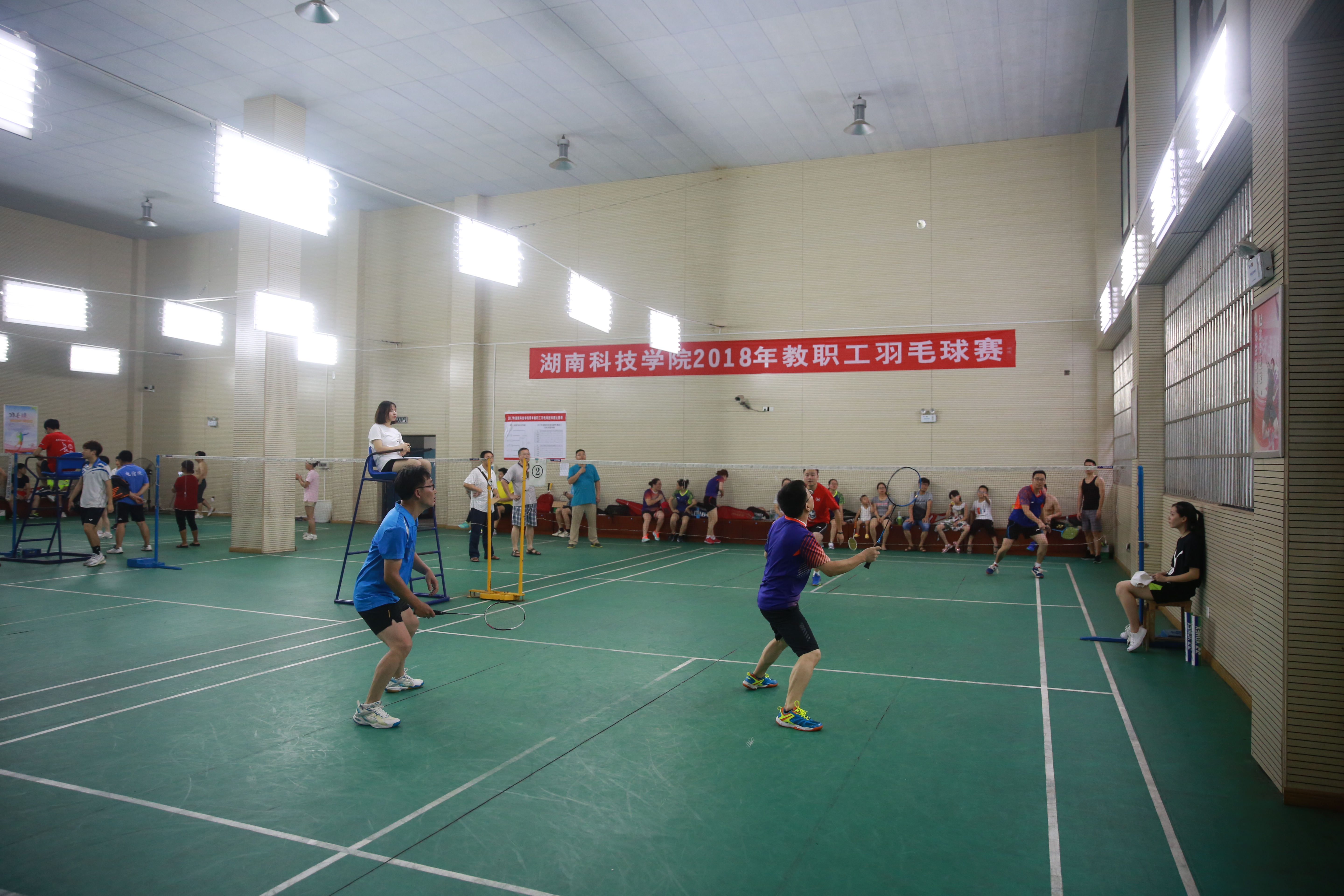 本网讯 为促进全民健身,丰富我校教师文化体育生活,提高教职工羽毛球水平。6月29日至7月2日,2018年度教职工羽毛球团体赛在训练馆举行,15个分工会代表队的109名教职工参赛。