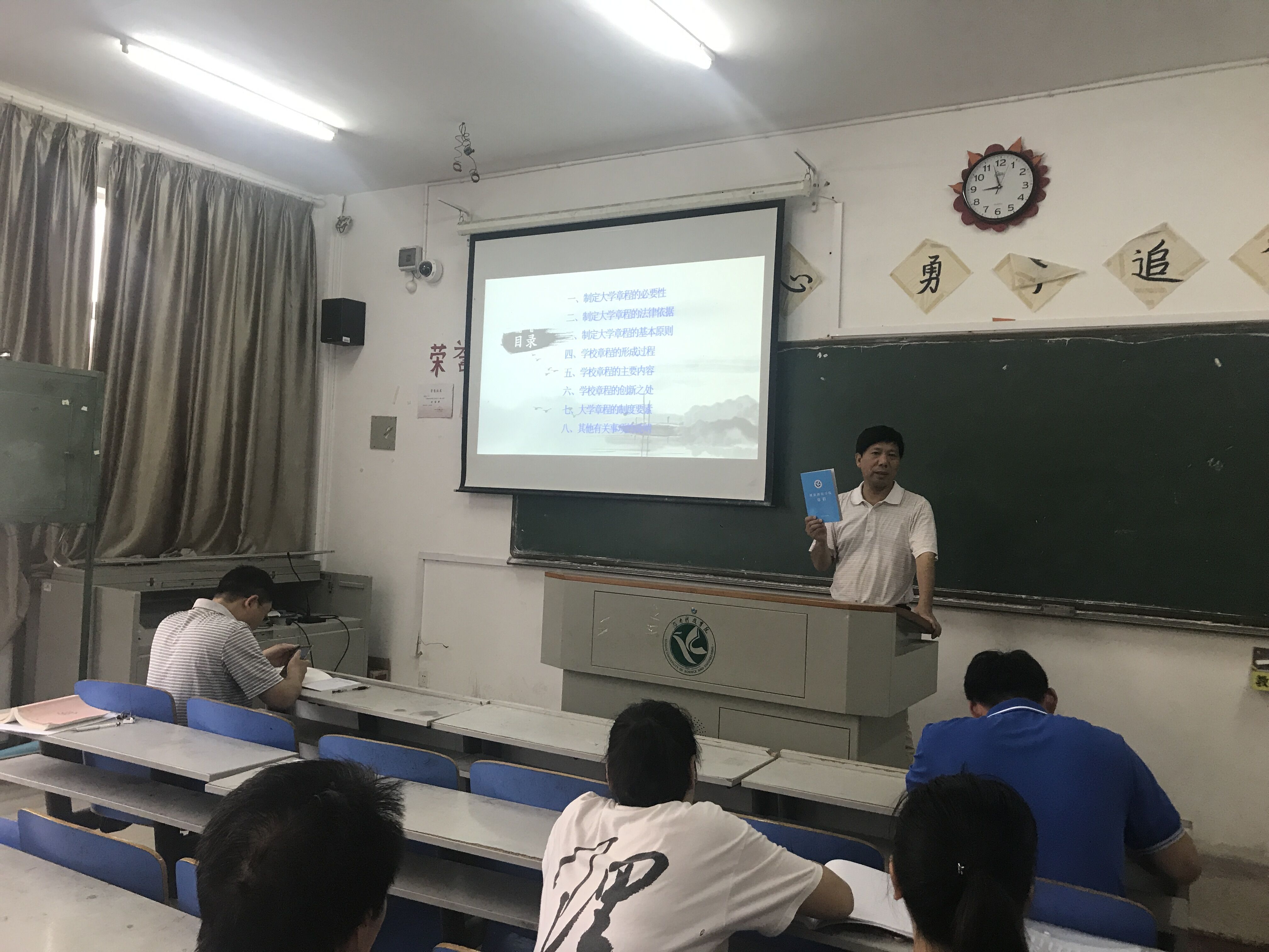 本网讯 5月22日下午,理学院全体教师于明理楼311学习《安博站官网登录入口_安博(中国)章程》,学习会邀请发展规划处处长潘剑锋解读章程内容。