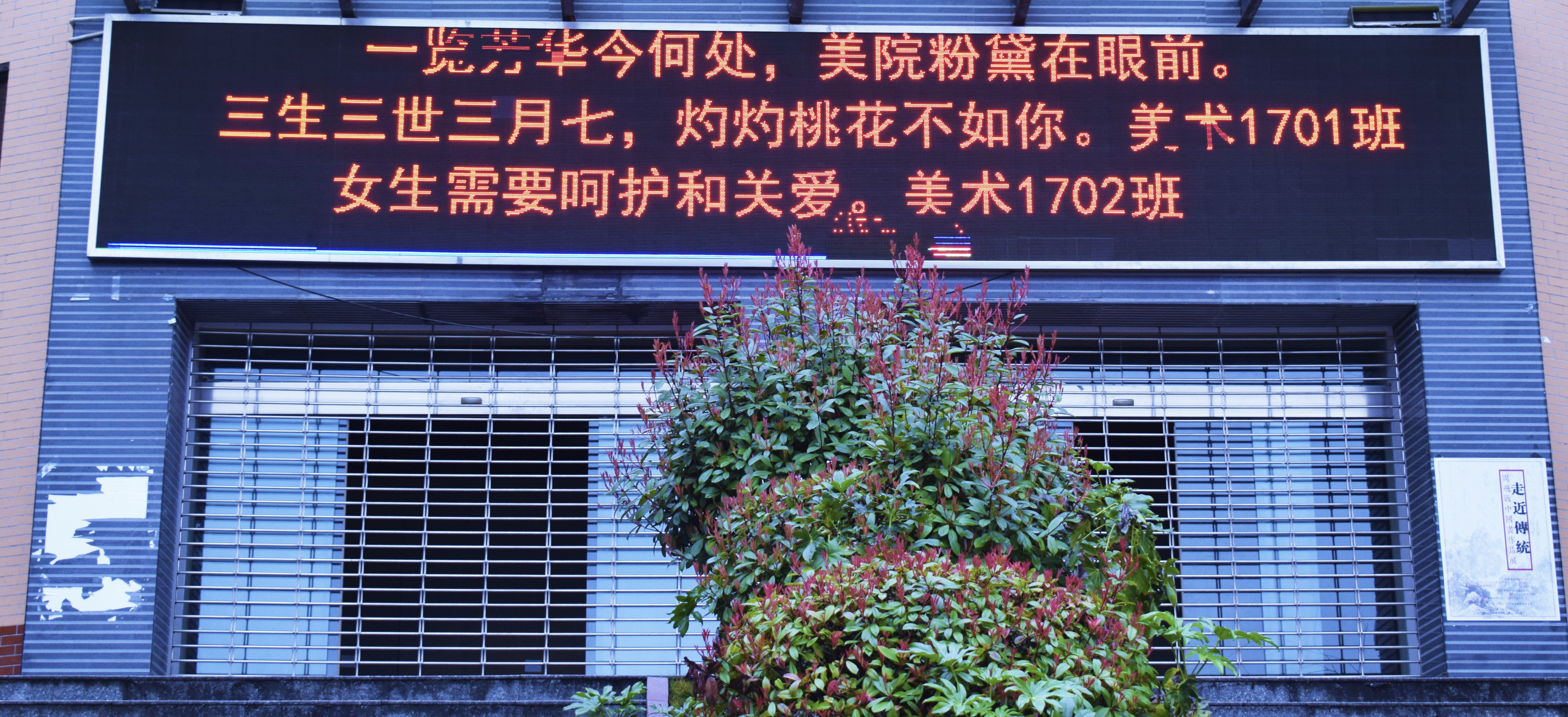 “一览芳华今何在,美院粉黛在眼前”“女生如花,洁白无瑕”“三生三世三月七,灼灼桃花不如你”……,该院各个班级积极参与,一条条富有创意饱含深情的标语为女生们献上祝福与赞美。来自2016级视觉班的丁冲同学表示:此次主题宣传标语书写活动,传达了学院在这个特殊的日子里对女生们的祝福、关爱和呵护,同时宣扬了女大学生们应有的精神风貌和聘婷姿态,激励我们做自立、自强、自尊、自爱新时代的女性。