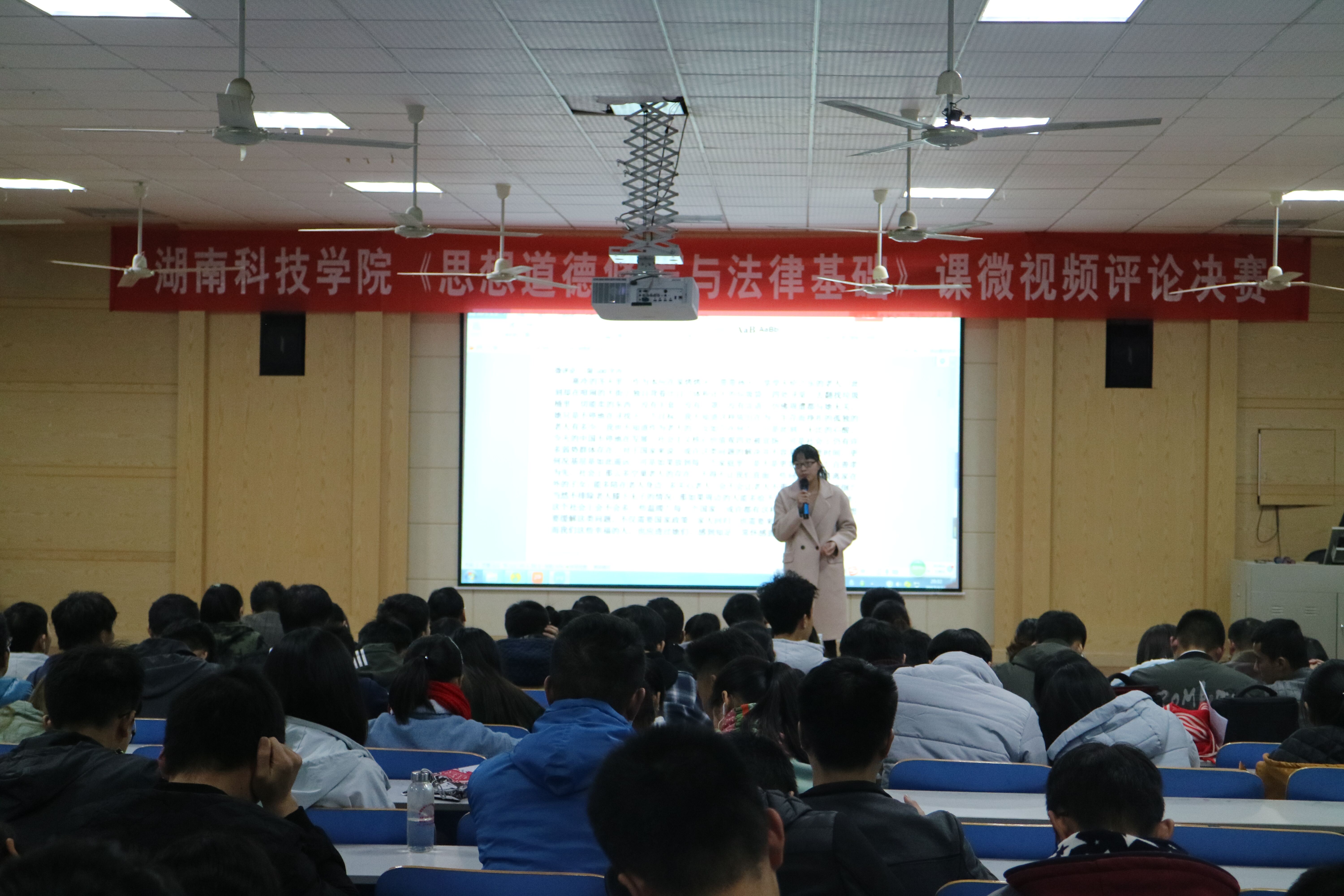本网讯 为贯彻落实党的十九大精神,深入学习习近平新时代中国特色社会主义思想,推动我校思想政治理论课教学改革。12月8日晚,马克思主义学院在致远楼举行《思想道德修养与法律基础》课微视频微评论评比决赛。该院党总支书记唐森树以及教务处、教学质量管理处的相关负责人等出席并担任评委。