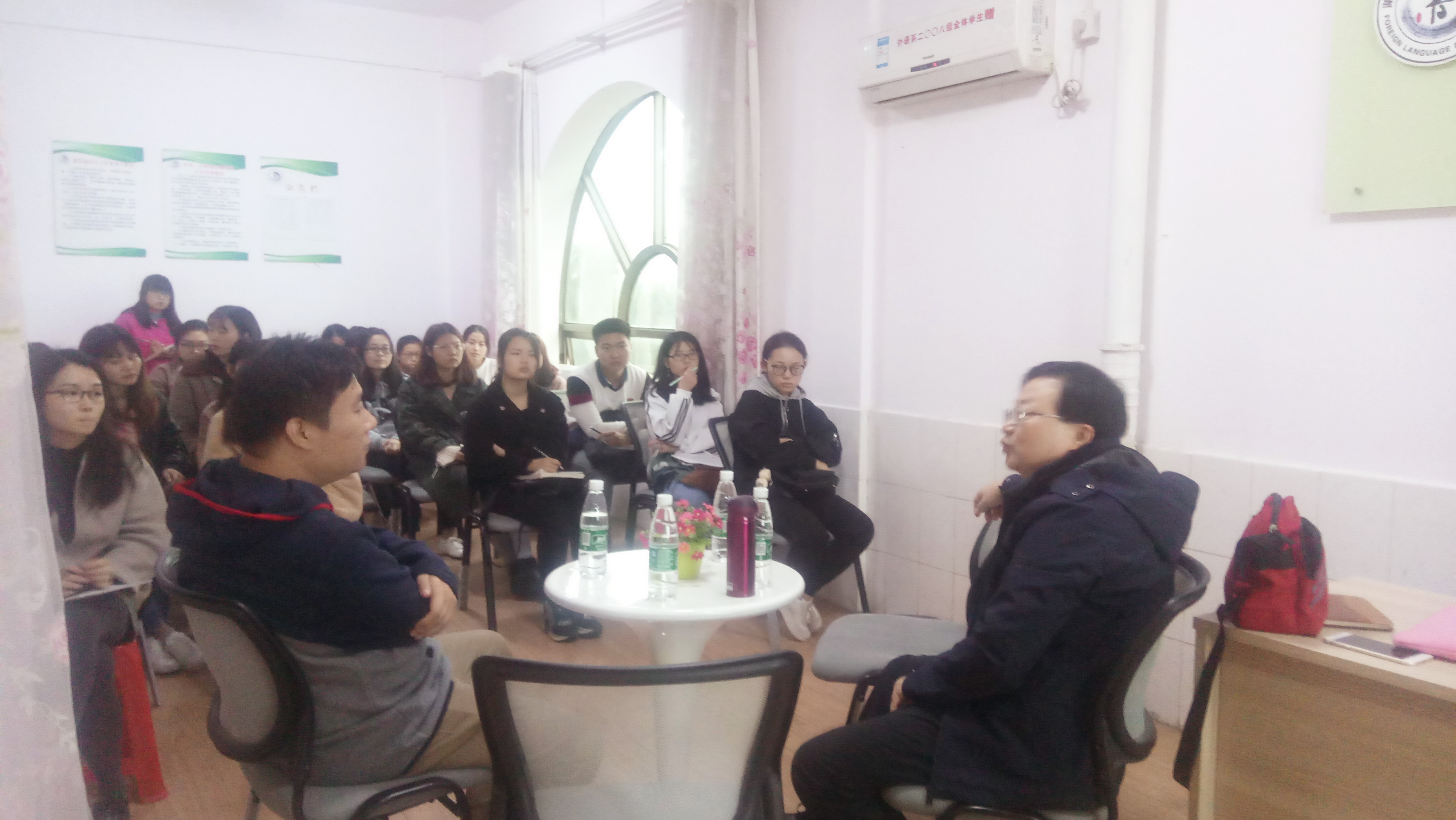11月16日,我校优秀校友、深圳市教科院正教授教研员、深圳大学及广州大学硕士生导师石永生回校指导学生就业,石永生分别与理学院和外国语学院学生座谈,理学院党总支书记陈旭日、外国语学院党总支副书记王瑛分别主持座谈。