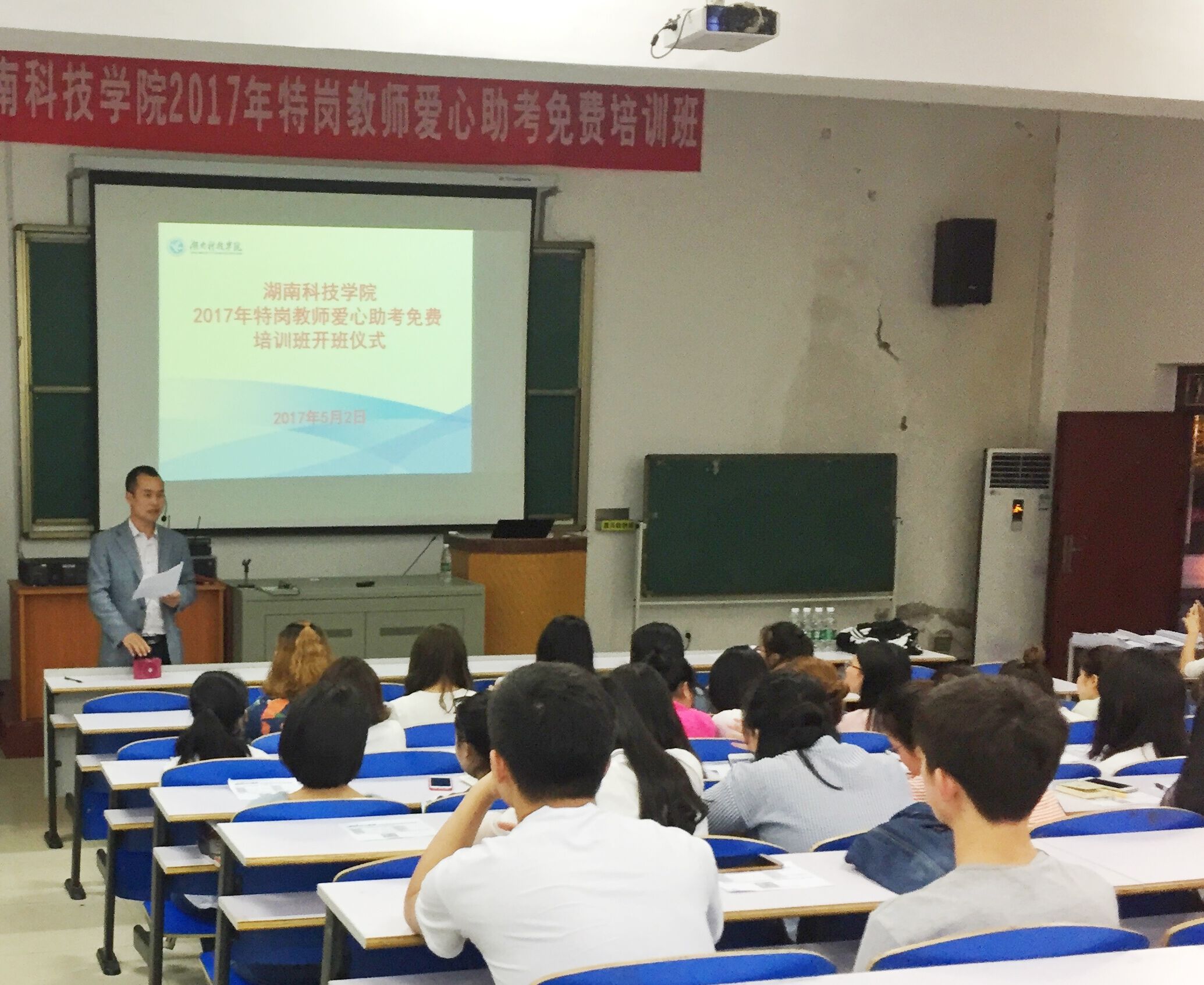 本网讯 为提高我校学生“特岗计划”考试通过率,5月2日晚,就业创业指导中心在美术楼举办了2017届毕业生特岗教师爱心助考免费培训班。