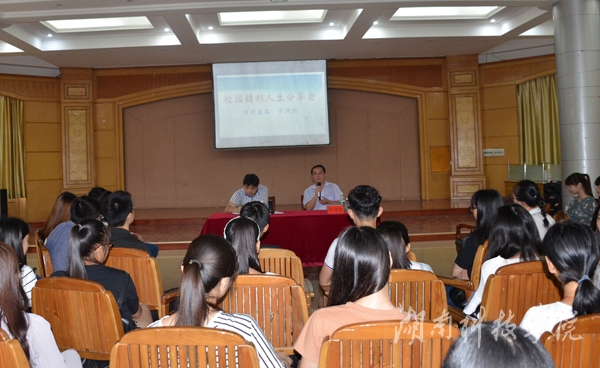 本网讯(通讯员 龙夏萍)6月12日下午,人文与社会科学学院在明德楼报告厅举办“校园精彩人生分享会”,全国教育创新先进工作者、广西知名中小学校长、该院中文专业优秀校友罗周胜先生作为特邀嘉宾与学生一起分享了他的成长经历、体会和感悟。
