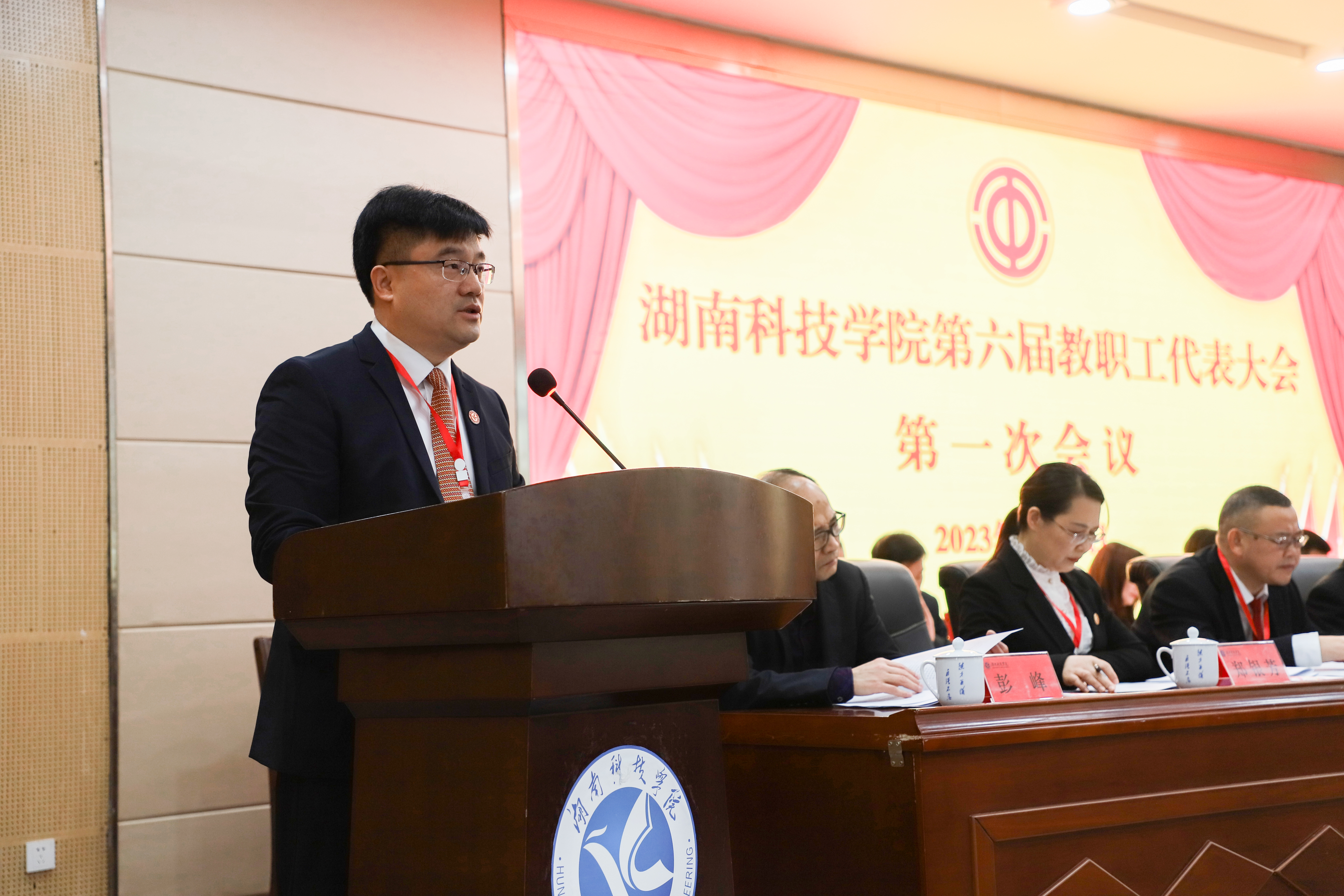 湖南省教育工会副主席邓曼代表省教育工会向大会的召开表示热烈祝贺,向出席本次大会的全体代表及辛勤工作在教学、科研、管理、服务一线的广大教职工致以诚挚的问候和崇高的敬意。她充分肯定了近年来学校工会取得的显著成绩,并对学校工会提出了三点希望:一是架好“连心桥”,强化思想政治引领。学校工会要坚定不移把学习宣传贯彻党的二十大精神引向深入,坚决有力加强工会党的建设,坚持不懈扛牢教职工思想引领政治责任。二是当好“贴心人”,助力教师队伍建设。学校工会要积极为教职工搭建平台,充分发挥自身优势,做到“吸引人、呵护人”,不断提升教职工的获得感、幸福感、安全感,当好教职工的“娘家人”。三是办好“暖心事”,提升服务能力水平。学校工会要努力加强自身建设,聚焦教职工“急难愁盼”,为广大教职工解难题办实事,凝聚学校改革发展强大合力。