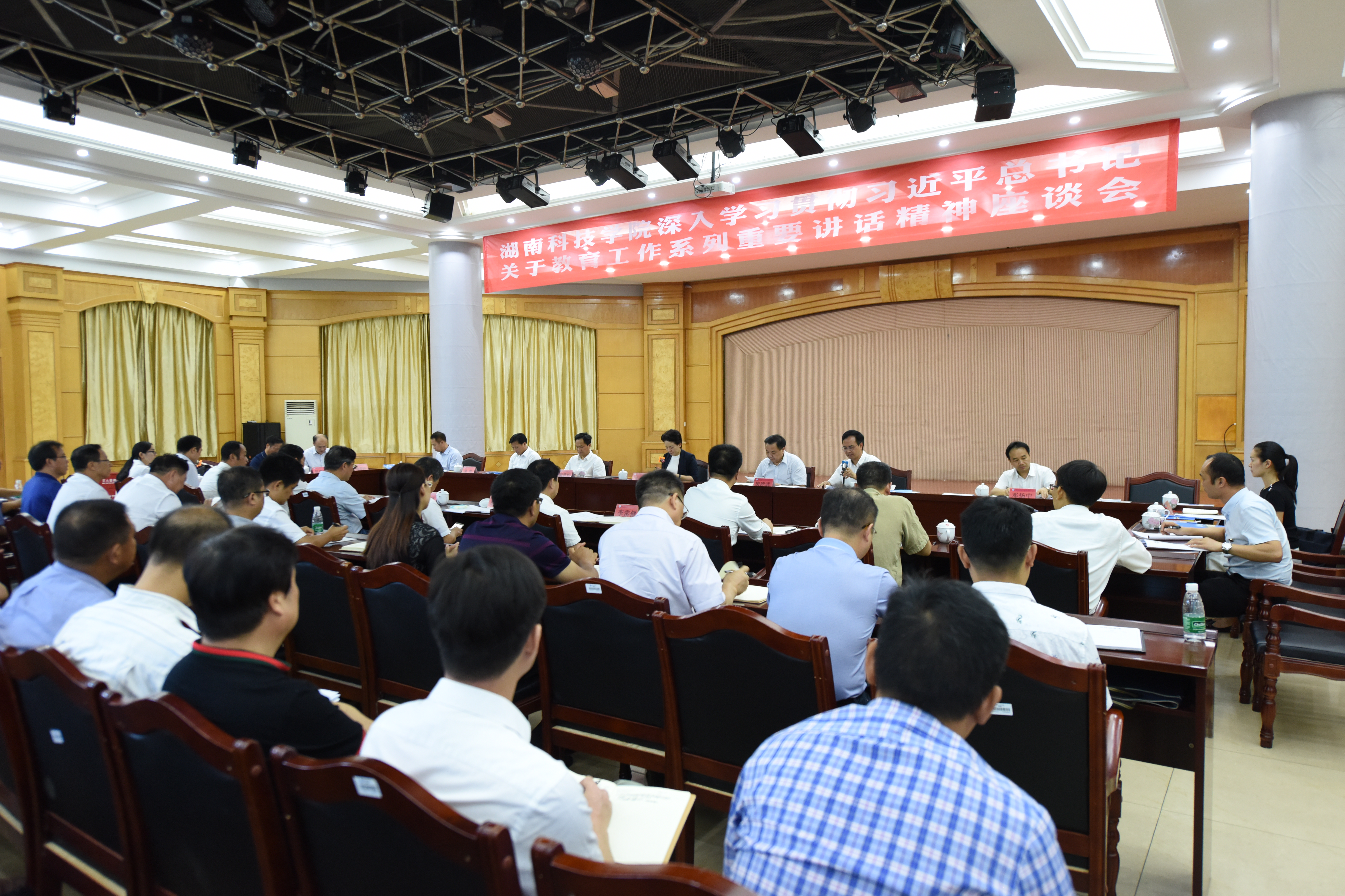 本网讯 9月10日下午,第34个教师节,市委书记、市人大常委会主任李晖来校看望慰问教职员工,向全校广大教师和教育工作者致以节日问候,并参加我校学习贯彻习近平总书记关于教育工作系列讲话精神座谈会。市委常委、市委秘书长唐能武,副市长谢景林,零陵区委书记唐烨,校领导陈弘、唐艳明、宋宏福、李常健、吴小林、程智开以及我校师生代表参加座谈会。